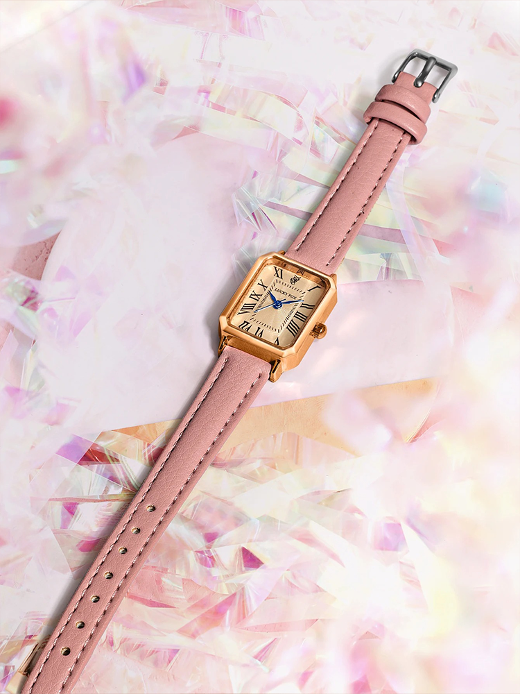 Florenza Leren Dames Horloge Met Vierkante Kast Goud - Roze