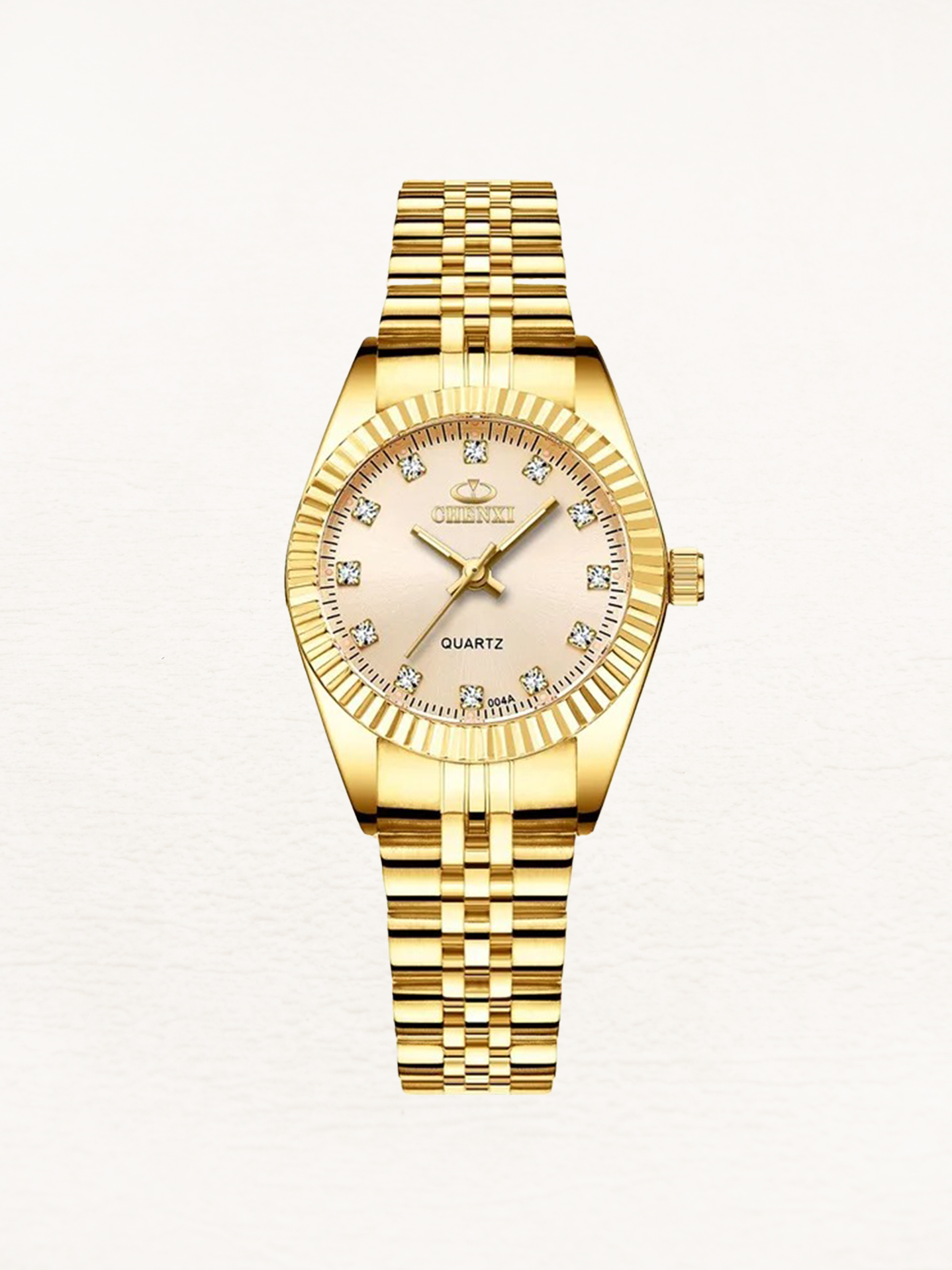 · Elegante kleine uitstraling: De gouden afwerking en het kleine, verfijnde design maken dit horloge tot een stijlvol accessoire voor elke gelegenheid