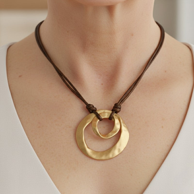 Virelle | Unisex Hanger Ketting – Zinklegering, Geometrisch Onregelmatig Cirkelvormig, Gedraaid Patroon