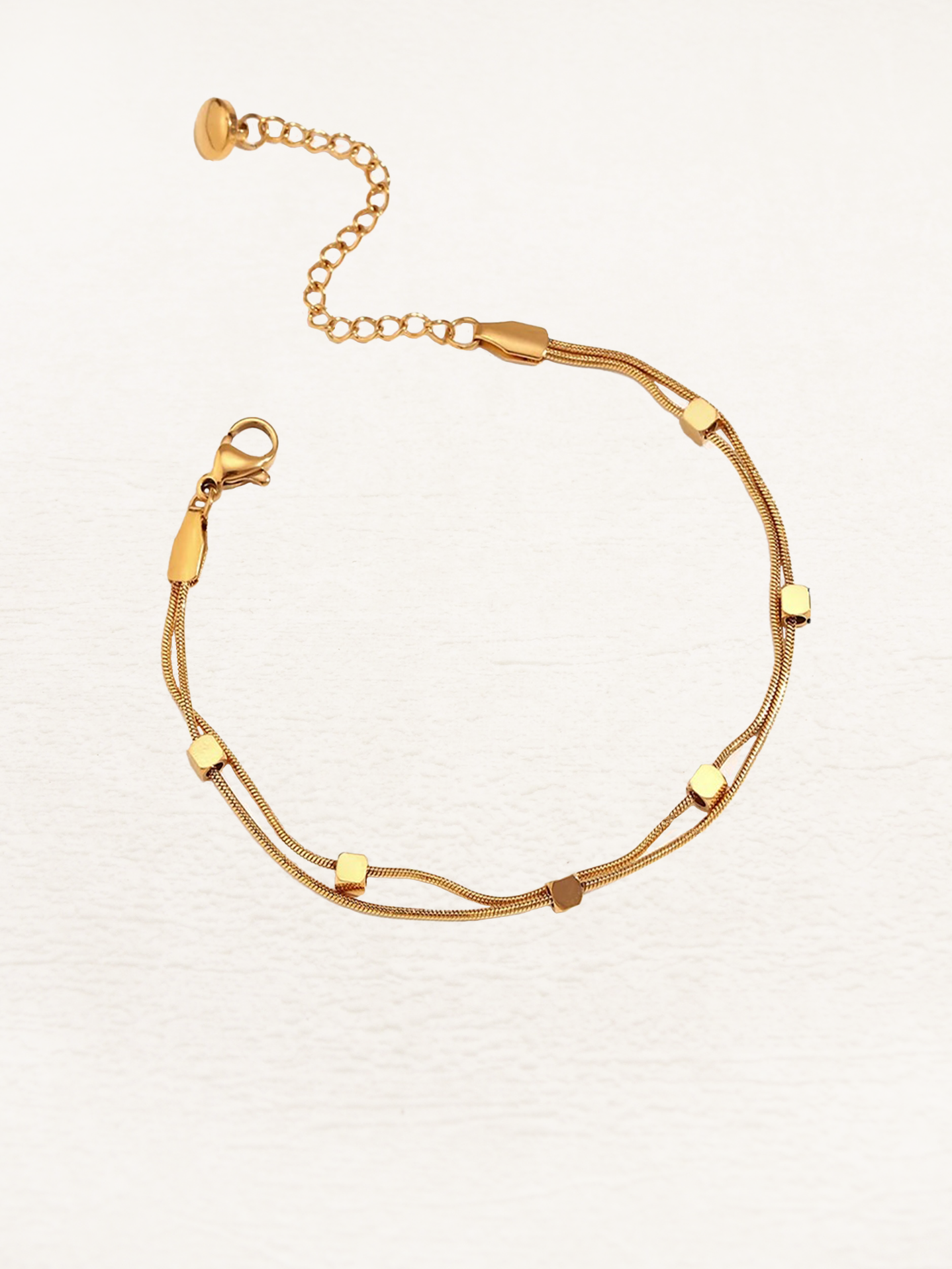 Ontdek onze gelaagde snake chain armband, een must-have accessoire voor een moeiteloos chique look! Deze gelaagde snake chain armband is gemaakt van duurzaam roestvrij staal en voegt een vleugje glamour toe aan elke outfit. Draag hem alleen voor een subtiele uitstraling of combineer hem met andere armbanden voor een meer opvallende look! 💫