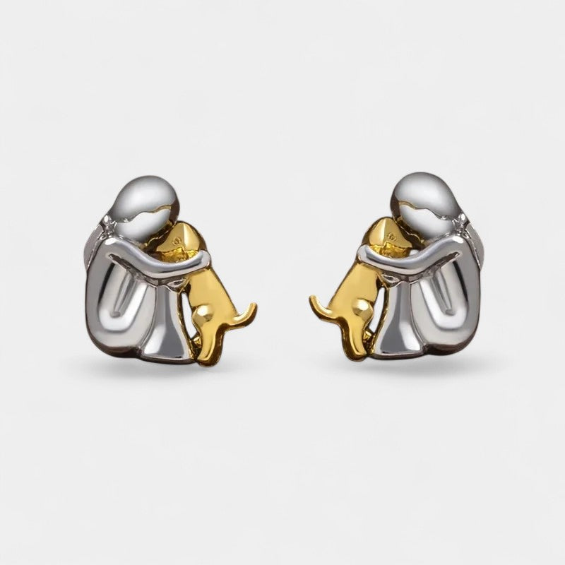 Virelle | Dames oorstekers – roestvrij staal, tweekleurig ontwerp, omhelzende figuur met hond