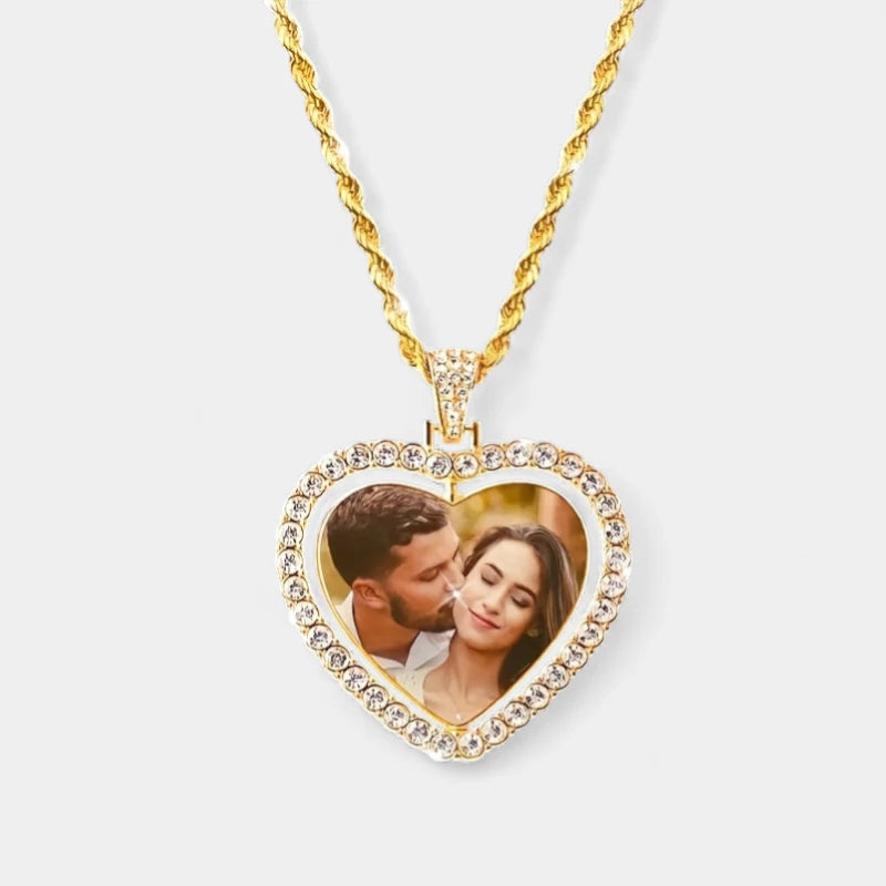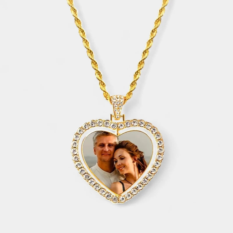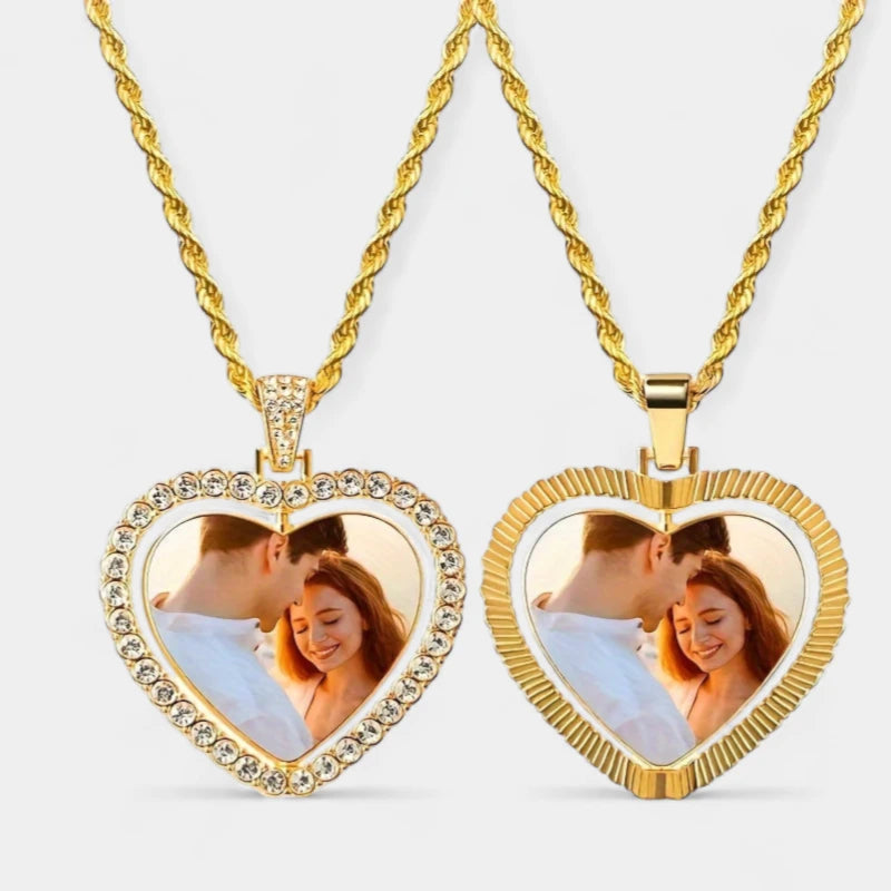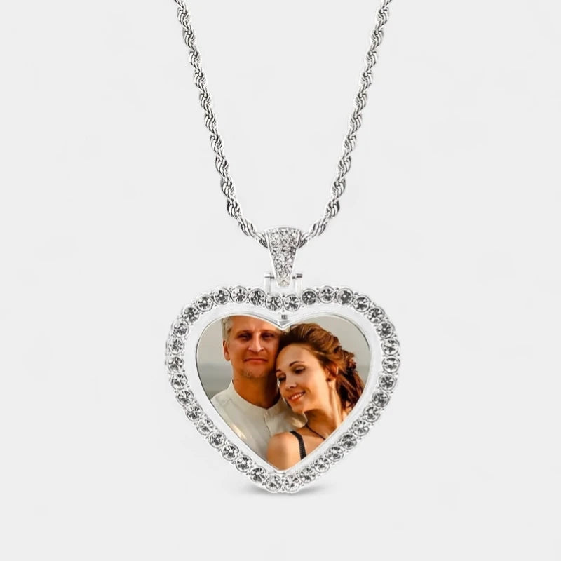 Virelle Ketting met Foto – Gepersonaliseerde Hartjes Hanger | Unisex Zinklegering met Glazen Inleg | Dubbelzijdig Design