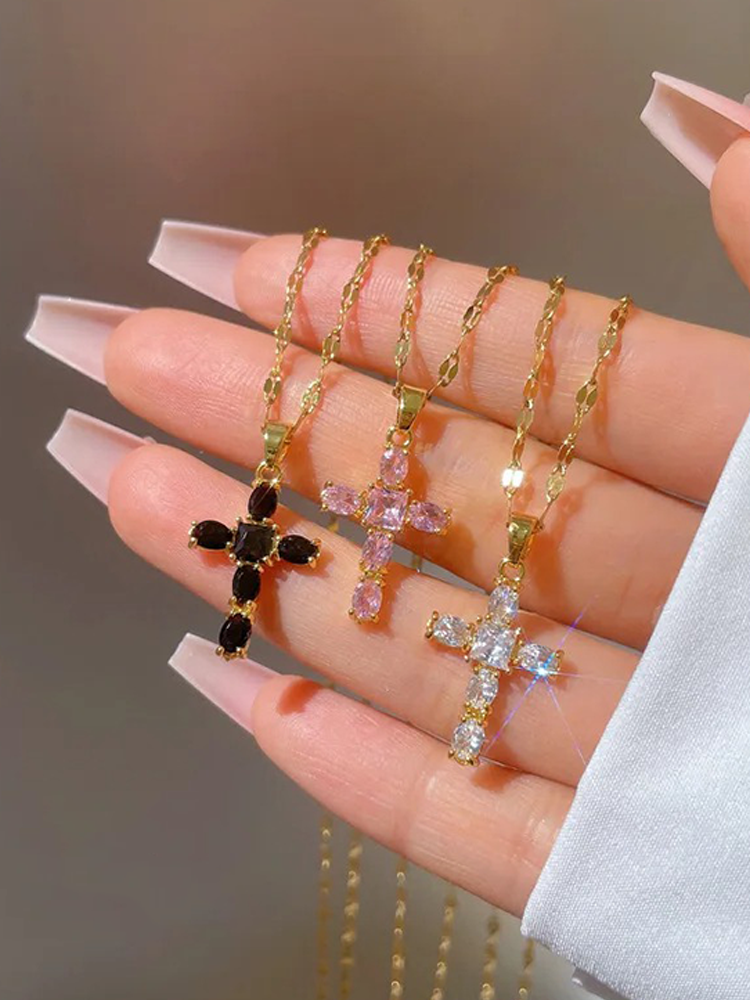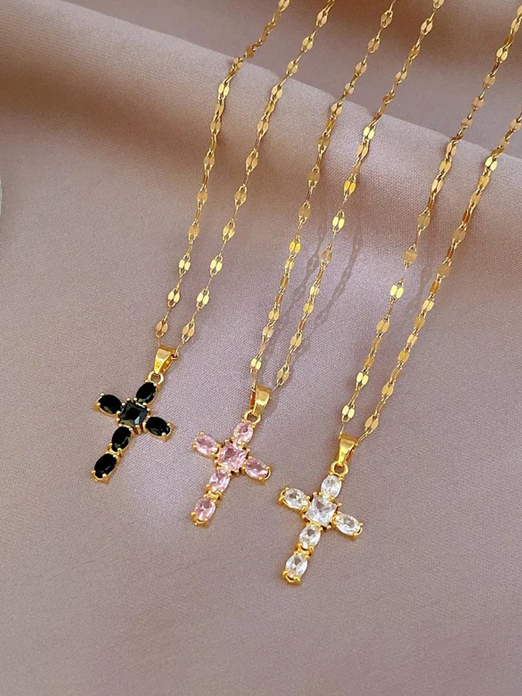 Alicia Zirkonia Kruis Ketting Goud Wit/ Roze/ Zwart