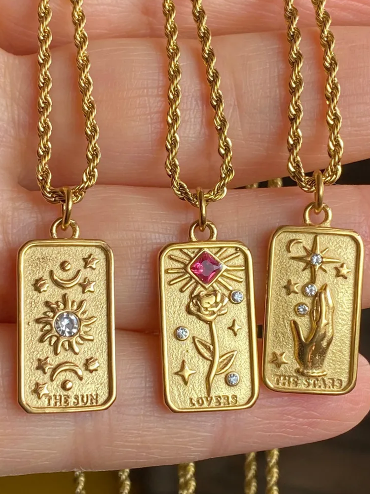 Draag deze gouden ketting als een herinnering aan de mooie momenten in het leven en de stralende energie die je omringt. Met zijn tijdloze ontwerp is deze tarotkaartketting een onmisbare toevoeging aan je sieradencollectie! 🔮☀️