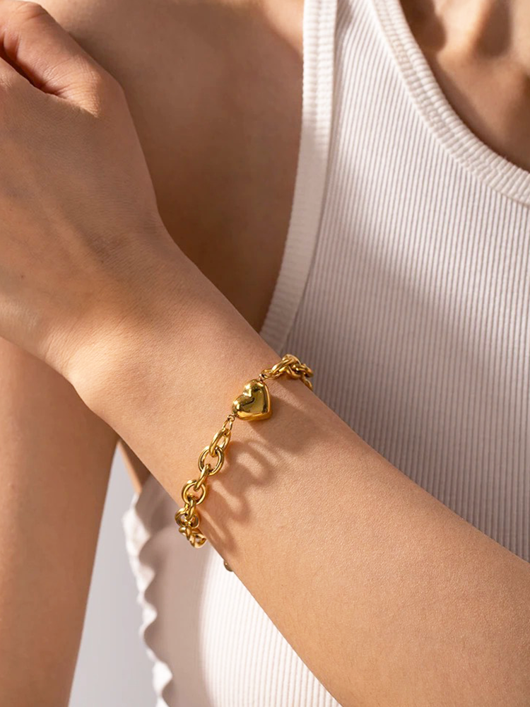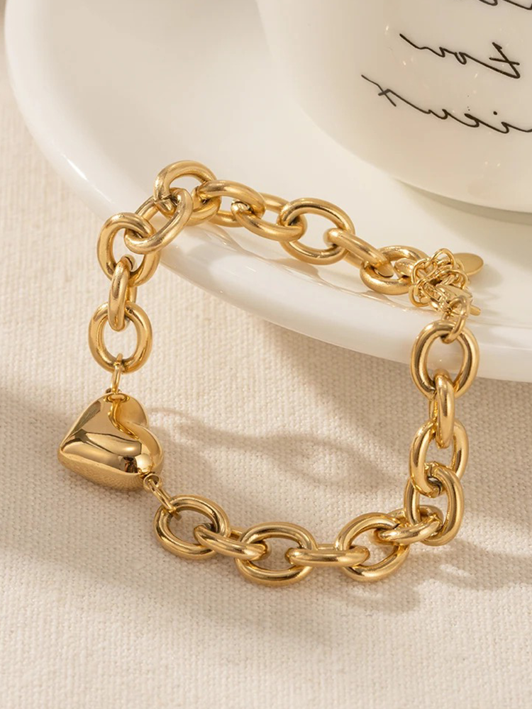Maak een stijlstatement met onze chunky hartjes armband! Deze opvallende gouden armband is voorzien van een groot hart als blikvanger, waardoor het een romantische en gedurfde uitstraling heeft. Het chunky ontwerp geeft een moderne twist aan het klassieke hartmotief, waardoor het perfect is voor liefhebbers van edgy en trendy sieraden.