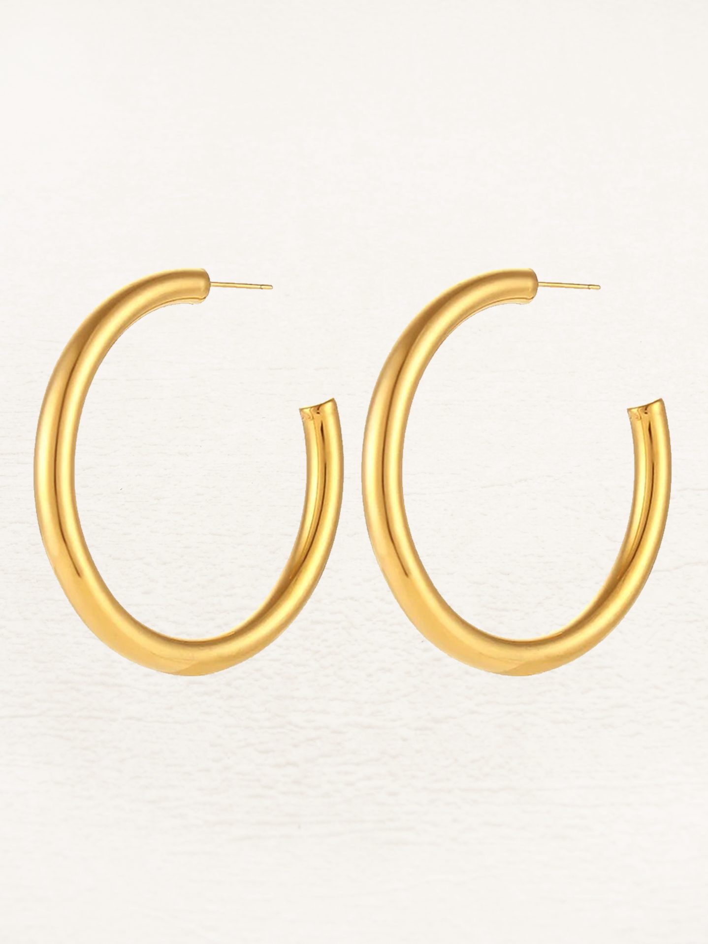 Deze gouden oorbellen zijn licht van gewicht en comfortabel om te dragen, waardoor ze perfect zijn voor de hele dag. Voeg een vleugje verfijning toe aan je look met deze elegante gouden oorringen en laat je stijl spreken! Deze oorbellen zijn verkrijgbaar in vier verschillende maten: 20 mm, 25 mm, 35 mm en 50 mm. 💫✨