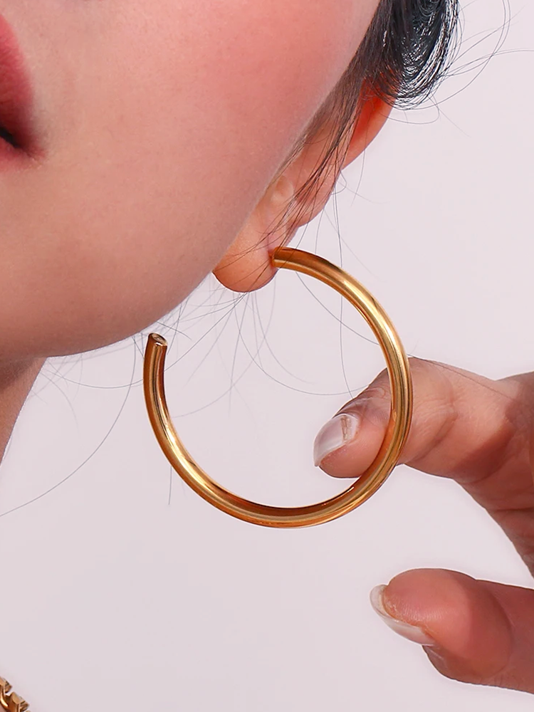 Deze gouden oorbellen zijn licht van gewicht en comfortabel om te dragen, waardoor ze perfect zijn voor de hele dag. Voeg een vleugje verfijning toe aan je look met deze elegante gouden oorringen en laat je stijl spreken! Deze oorbellen zijn verkrijgbaar in vier verschillende maten: 20 mm, 25 mm, 35 mm en 50 mm. 💫
