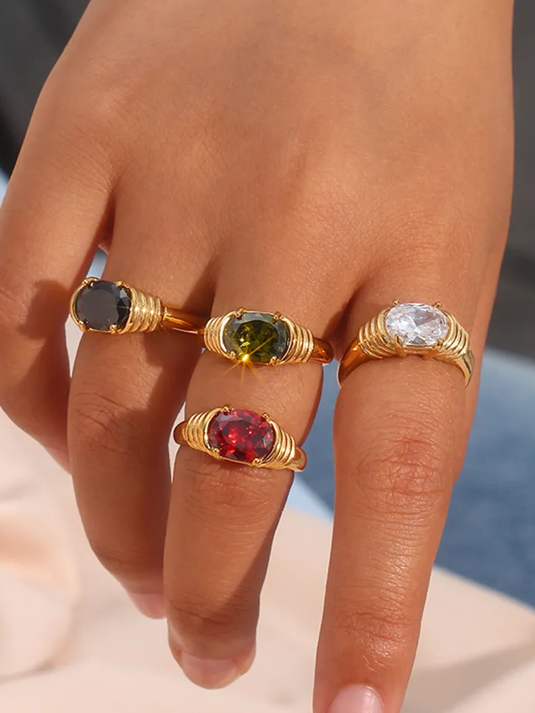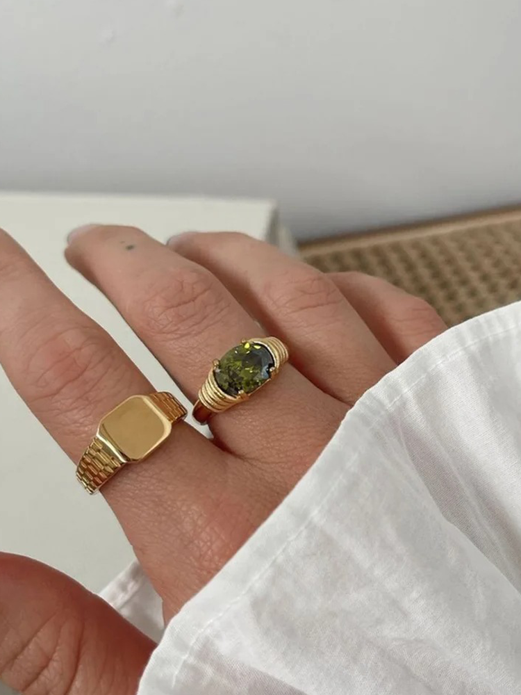 De ring is gemaakt van hoogwaardig roestvrij staal met een 18K gouden coating, waardoor hij waterproof is en niet zomaar zal verkleuren. Of je hem nu draagt voor een avondje uit of als een dagelijkse accessoire, deze ring voegt een vleugje glamour toe aan elke outfit en laat je stralen! 💍✨