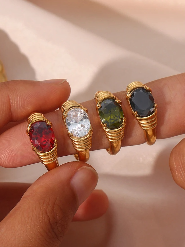 De ring is gemaakt van hoogwaardig roestvrij staal met een 18K gouden coating, waardoor hij waterproof is en niet zomaar zal verkleuren. Of je hem nu draagt voor een avondje uit of als een dagelijkse accessoire, deze ring voegt een vleugje glamour toe aan elke outfit en laat je stralen! 💍✨