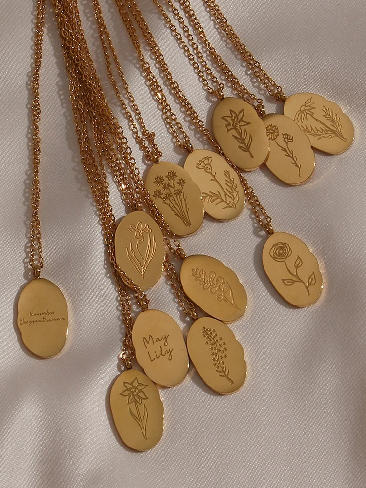 Birthflower/ Geboorte Bloem Ketting Ovaal Goud