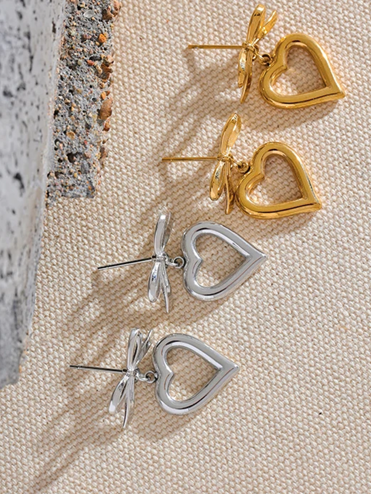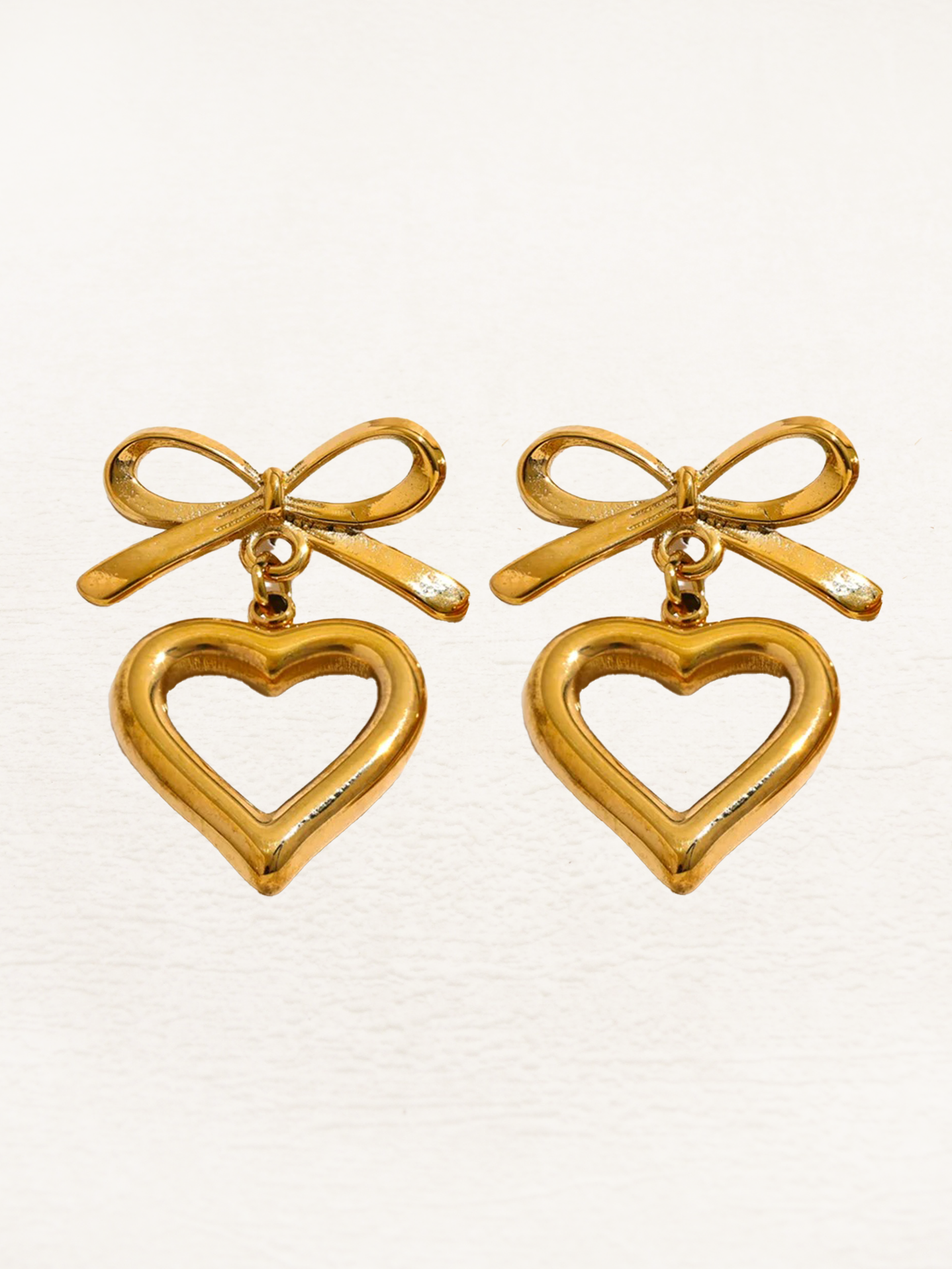 Voeg wat speelse romantiek toe aan je look met deze trendy strik oorbellen met een hangend hartje! De schattige strikvorm voegt een vleugje speelsheid toe, terwijl het hangende hartje een subtiele hint van romantiek geeft. Deze oorbellen zijn perfect voor dagelijks gebruik of voor een speciale gelegenheid waarbij je wilt stralen! 💖🎀