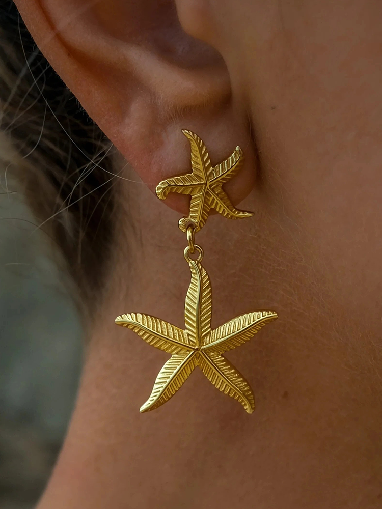 Pien Hangende Zeester Oorbellen Goud