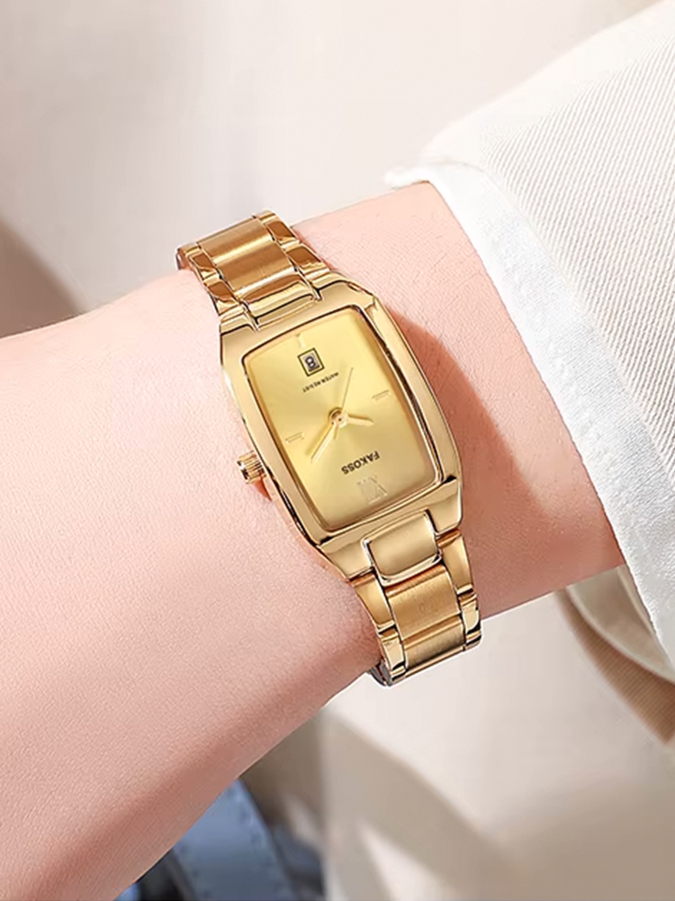 • Elegante rechthoekige kast: Het verfijnde design maakt dit horloge perfect voor een chique en moderne uitstraling.