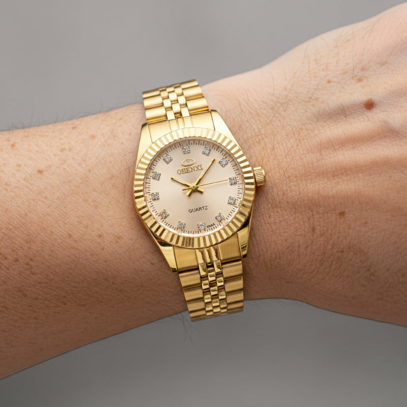 · Elegante kleine uitstraling: De gouden afwerking en het kleine, verfijnde design maken dit horloge tot een stijlvol accessoire voor elke gelegenheid