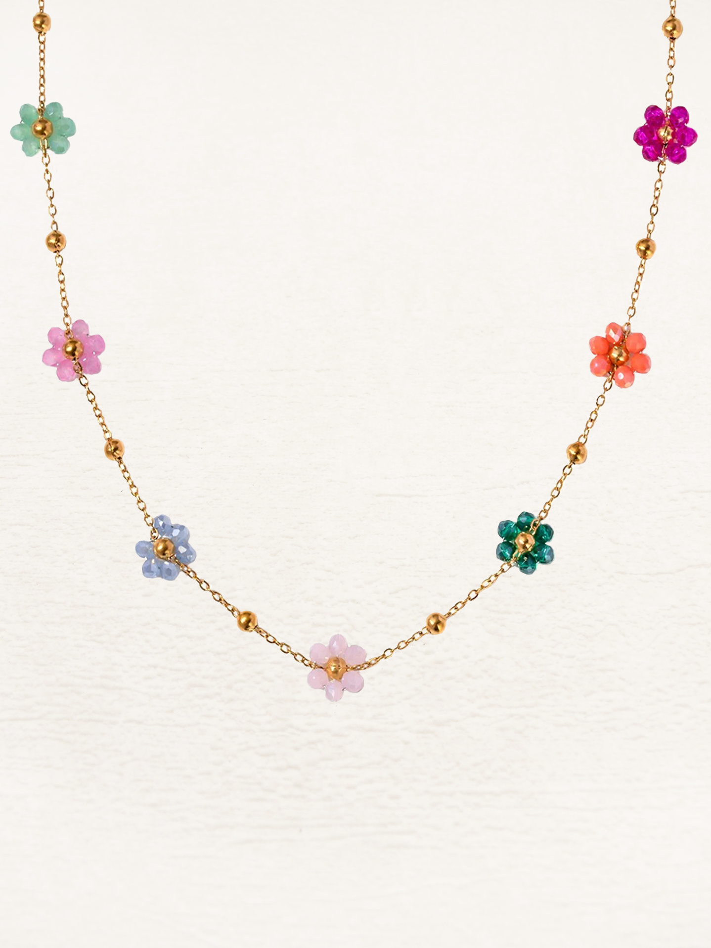 Roseline Gekleurde Bloemetjes Ketting Goud