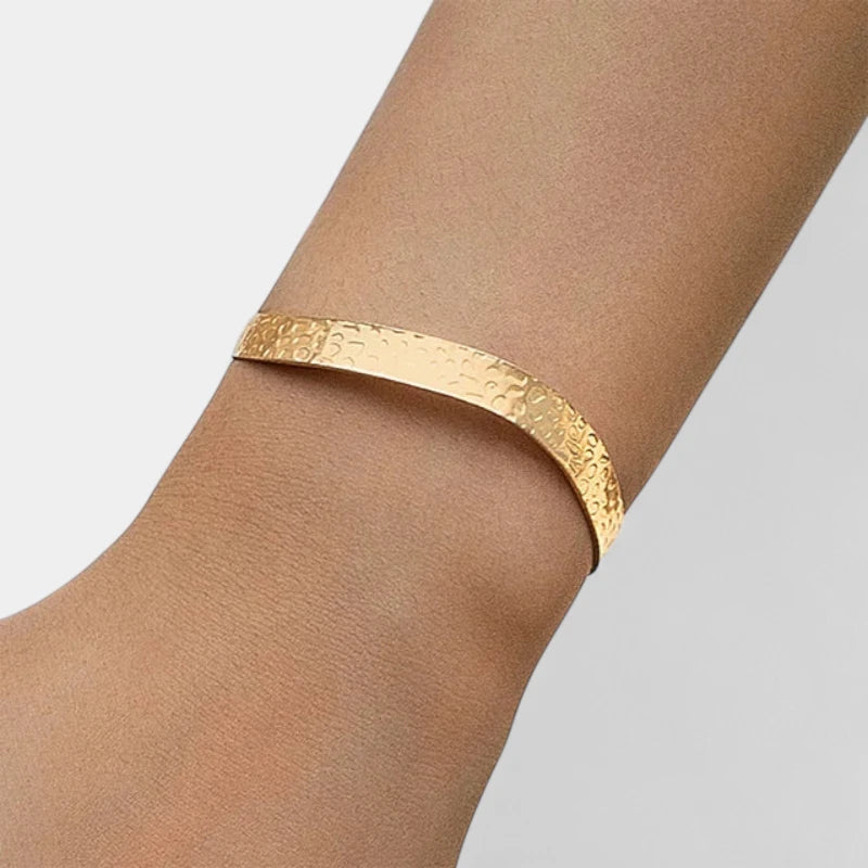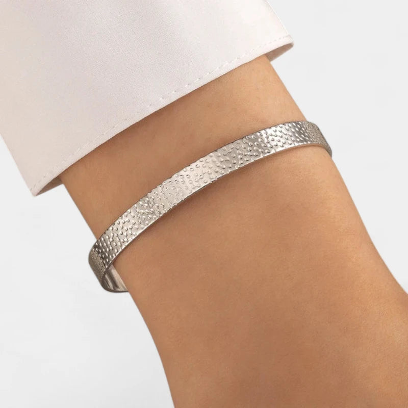- Veelzijdig Ontwerp: De open structuur van de armband maakt het mogelijk om deze te mixen en matchen met andere sieraden, of je nu kiest voor een minimalistische uitstraling of een opvallende stapel.