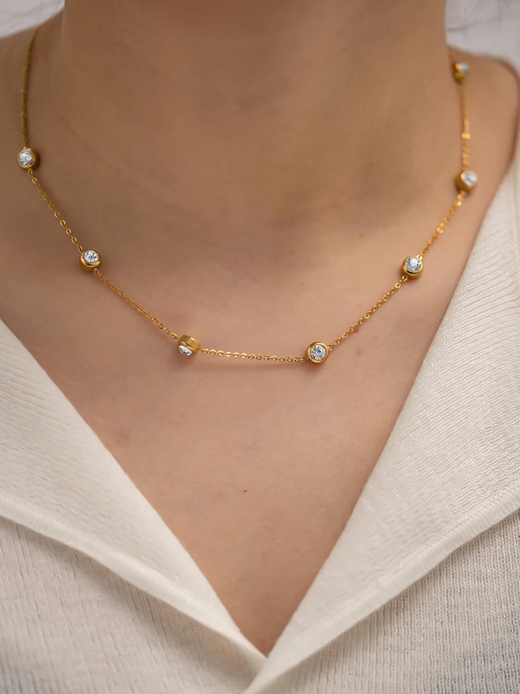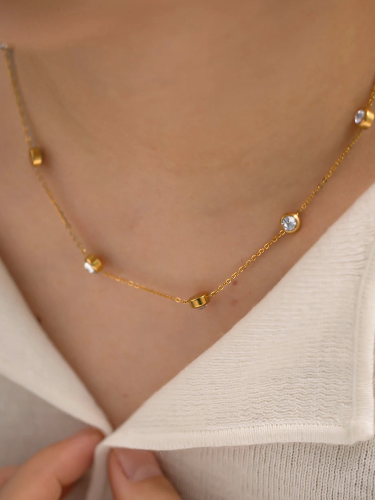 Voeg een vleugje glans toe aan je look met onze subtiele ketting met zirkonia steentjes! Deze verfijnde ketting is perfect voor dagelijks gebruik en voegt net genoeg sparkle toe aan elke outfit. De zirkonia steentjes zorgen voor een subtiele, maar elegante uitstraling, waardoor deze ketting ideaal is voor zowel formele als informele gelegenheden. Draag hem alleen voor een minimalistische look of combineer hem met andere kettingen voor een trendy gelaagde stijl! 💫