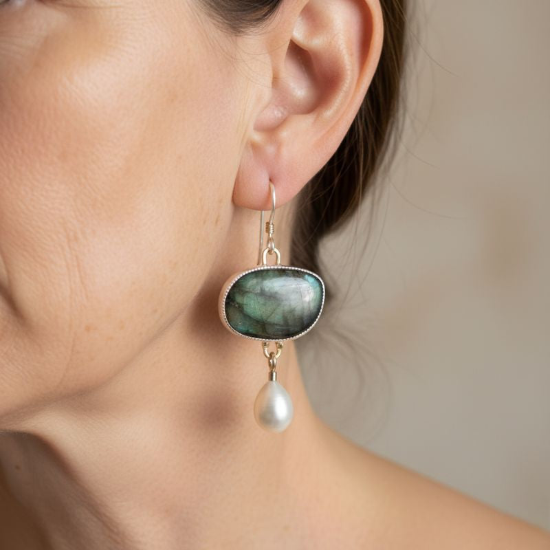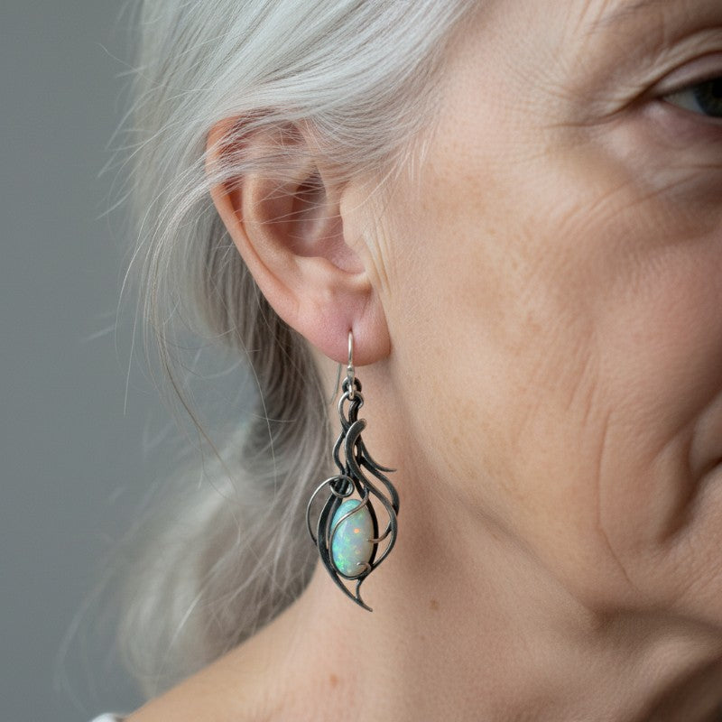 Vintage Blauwe Opal Oorbellen in Sterling Zilver