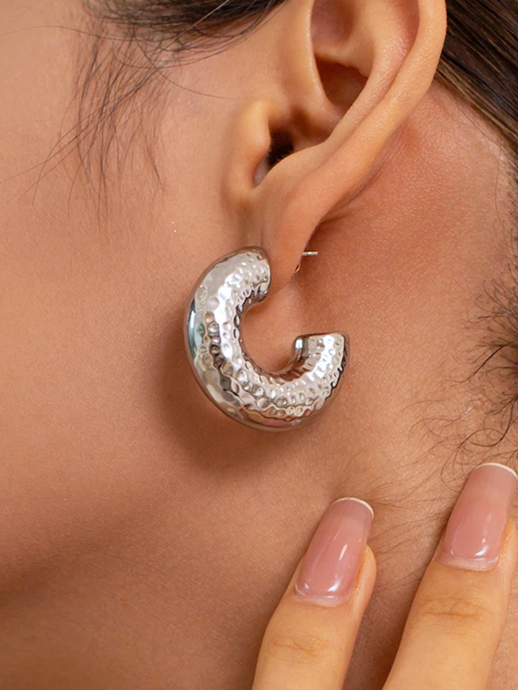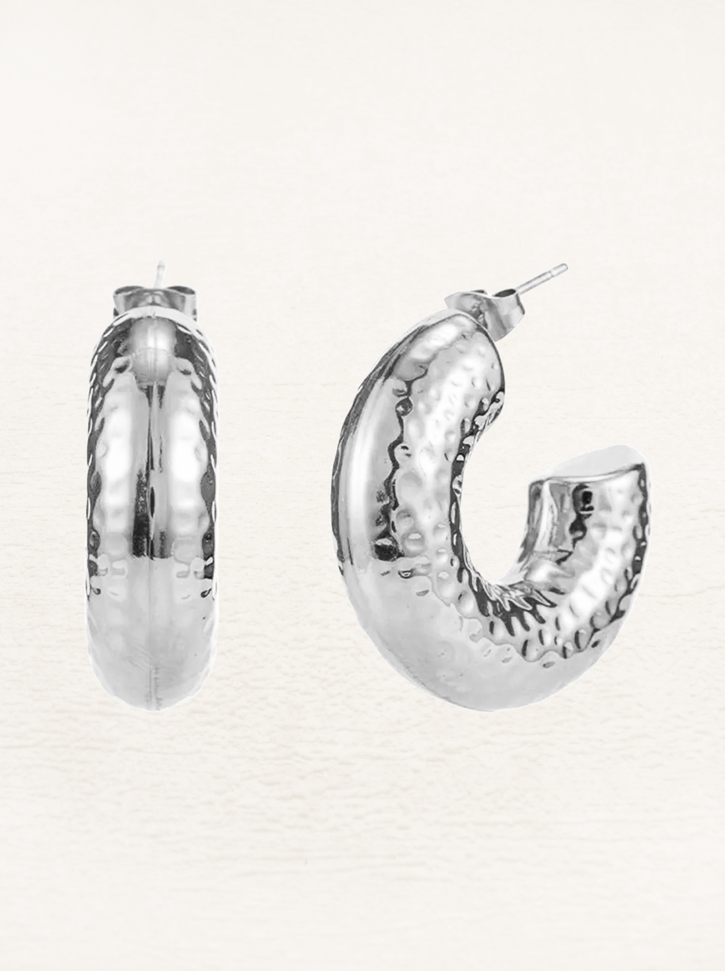 Doutzen Gehamerde Chunky Oorringen Zilver