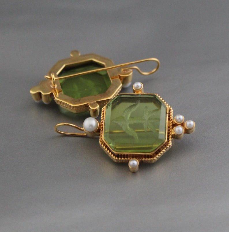 Vintage Ronde Groene & Rode Kristallen Oorbellen
