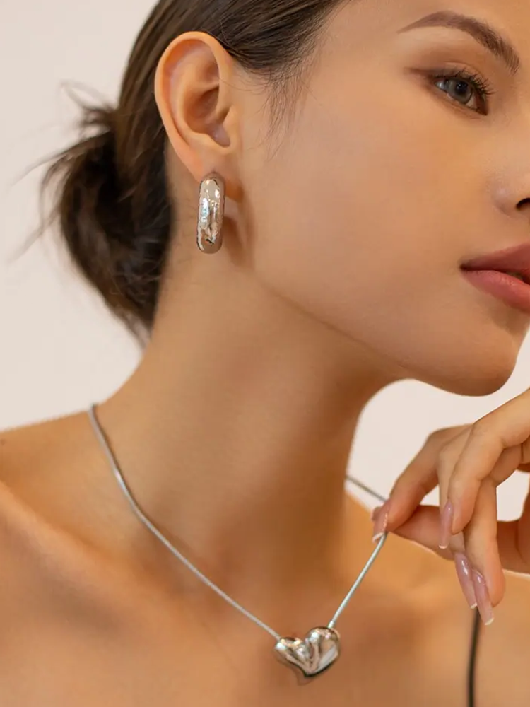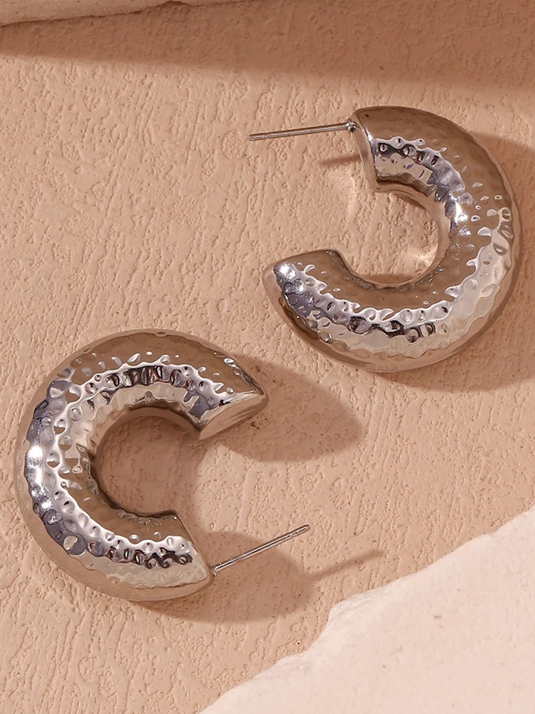 Doutzen Gehamerde Chunky Oorringen Zilver