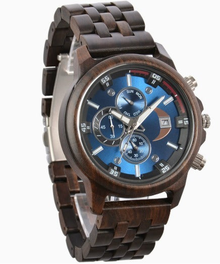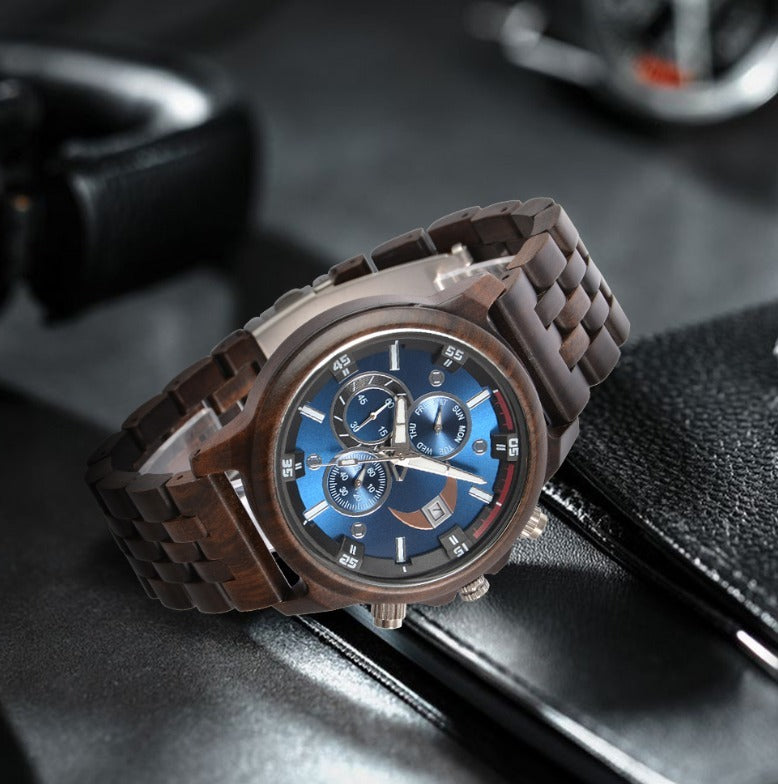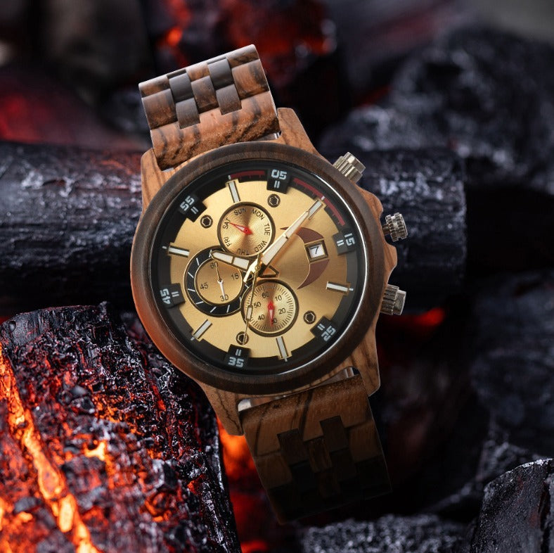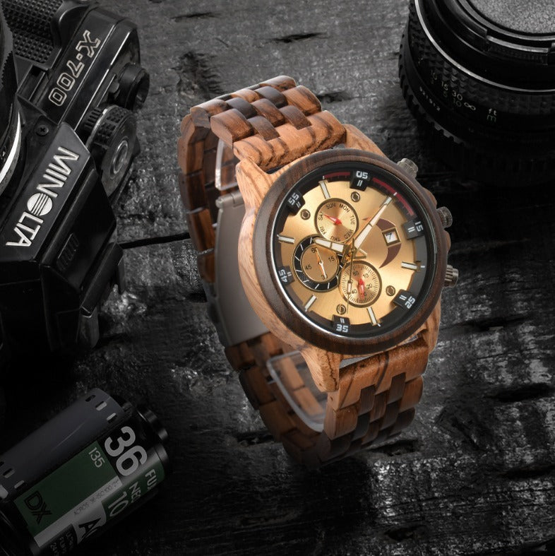 Virelle | Men's Watch β Walnut Wood, Calendar, Dial
