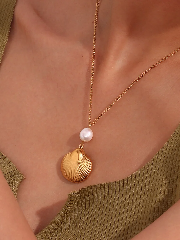 Wear this necklace alone for a subtle statement or pair it with matching gold earrings or bracelets for a cohesive look. This necklace is an elegant addition to your jewelry collection! 🐚✨🤍