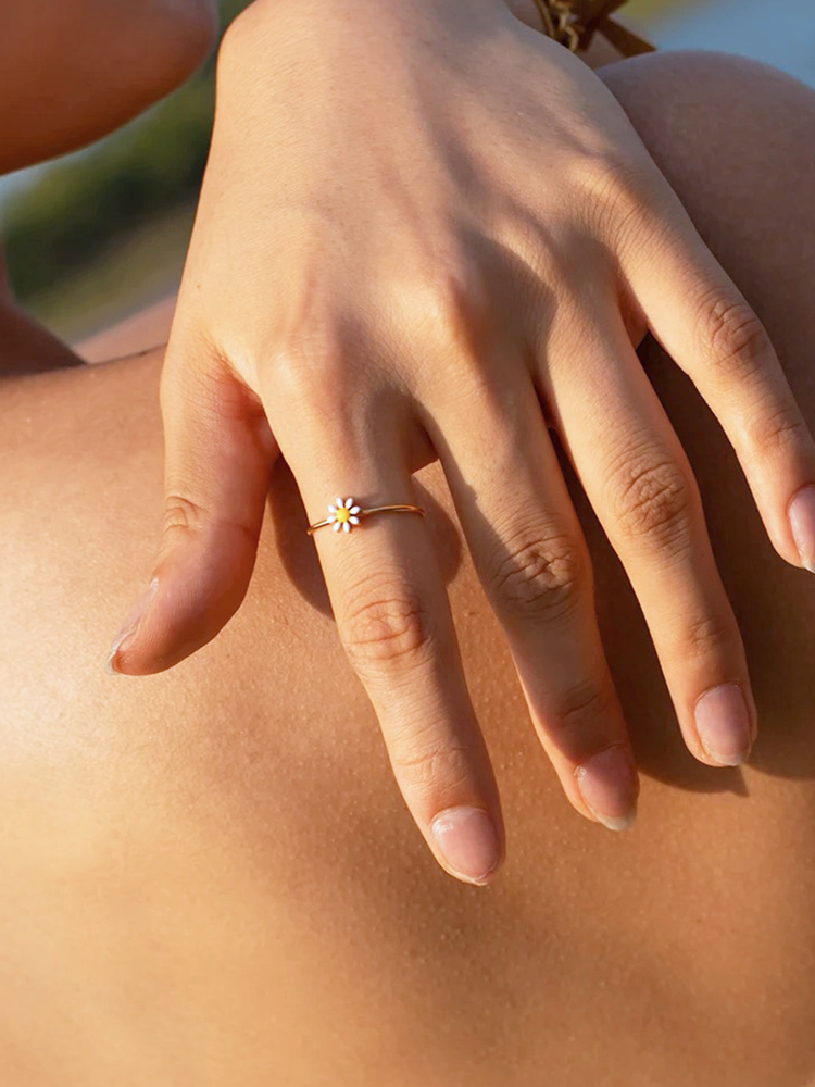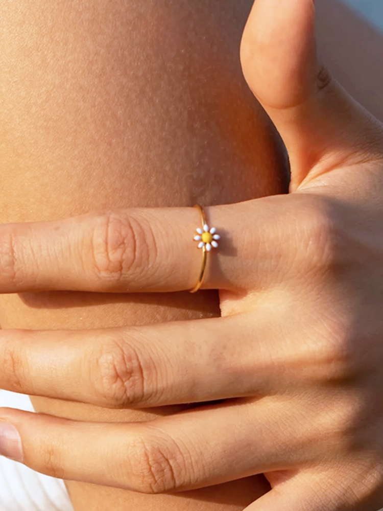 Make a statement with our delicate ring, featuring a beautiful white flower as the focal point! This adjustable gold ring adds a touch of sophistication to any look and is perfect for everyday wear.