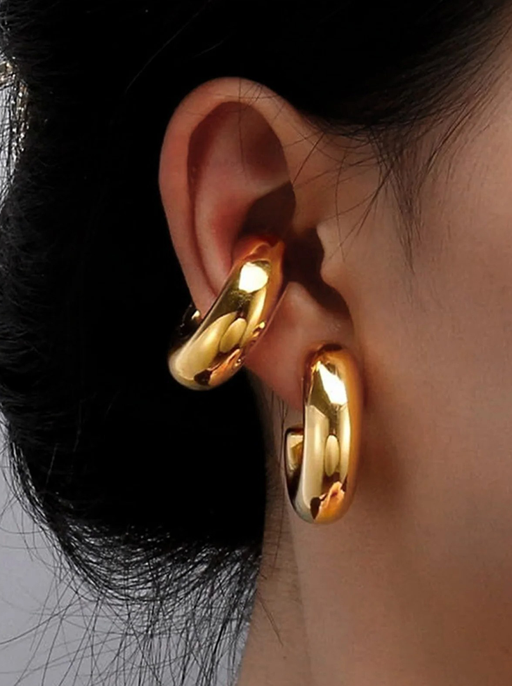 Get the ultimate edgy look with our chunky ear cuff! These gold clip-on earrings are totally on trend and instantly add a touch of style to your outfit.