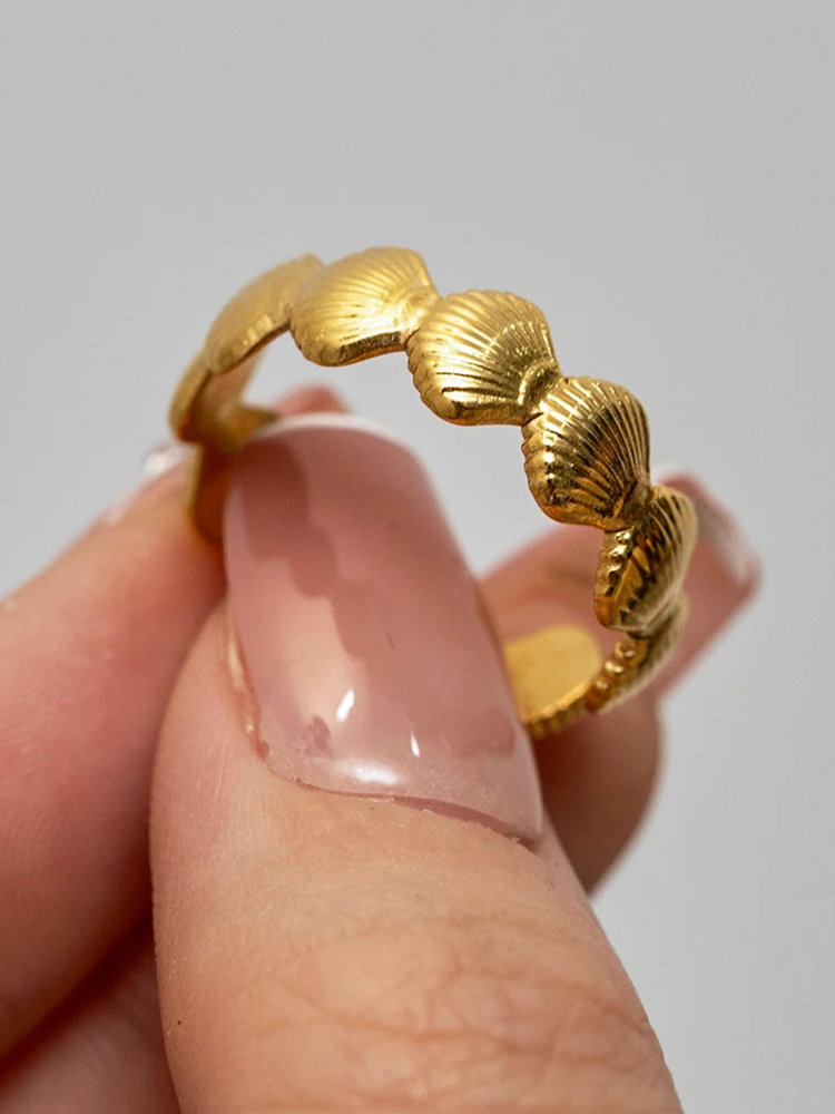 Add a touch of summer charm to your look with this beautiful adjustable ring, inspired by the beauty of the ocean! This gold ring is subtly adorned with shells, making you feel like you're always close to the sea.