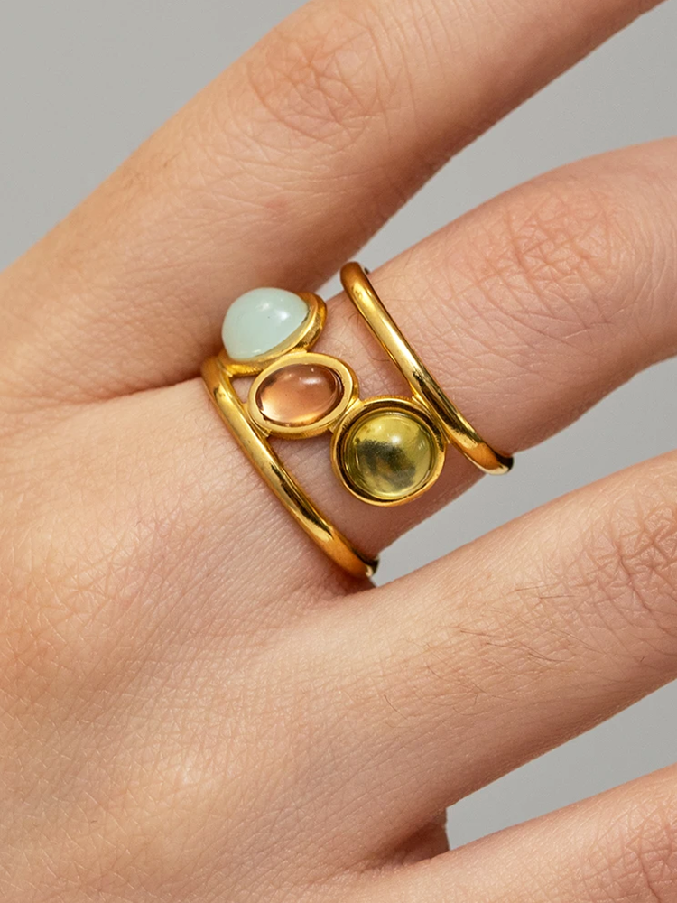 Make a statement with this beautiful adjustable ring, adorned with vibrant colored stones! This gold ring adds a touch of colorful elegance to any outfit and lets you shine with style.