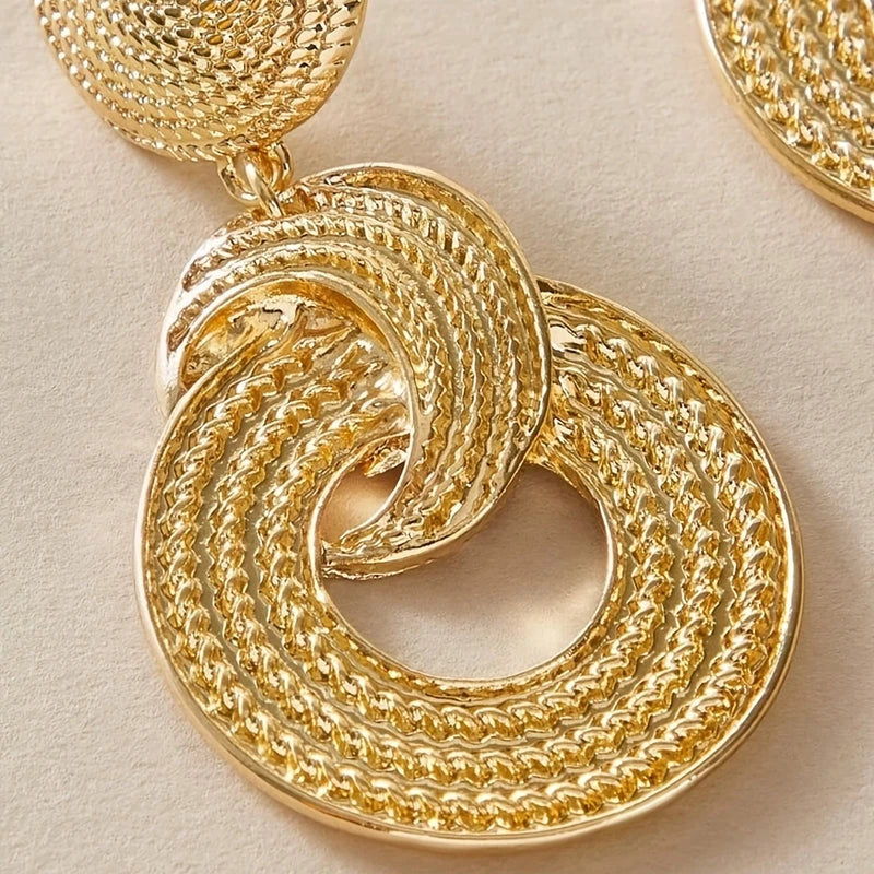 Add a striking and elegant touch to your outfit with the Virelle women's earrings in a large geometric circle design . These dangling earrings are crafted from gold-plated metal with an 18K gold plating for a luxurious look.