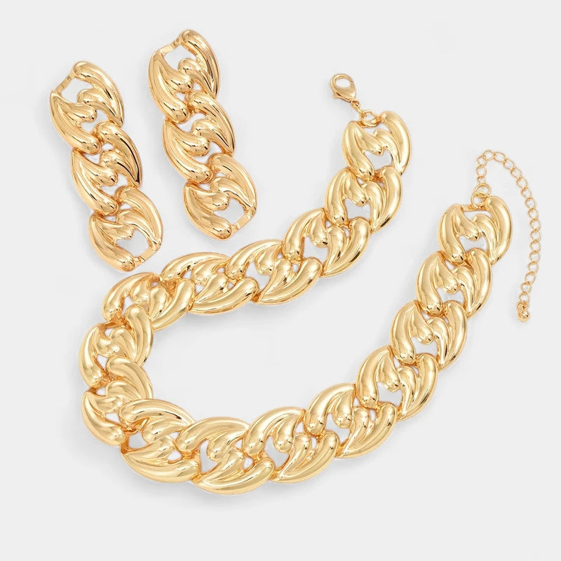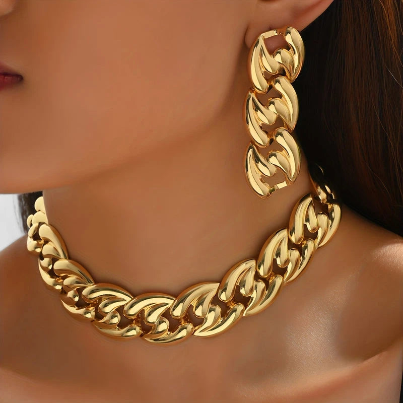 - Chunky Design: Robust necklace and earrings that instantly grab attention.
