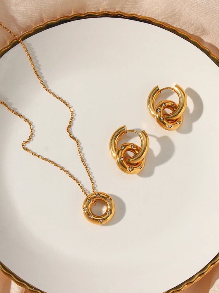 Luca Zirkonia Donut Ketting + Oorbellen Set Goud