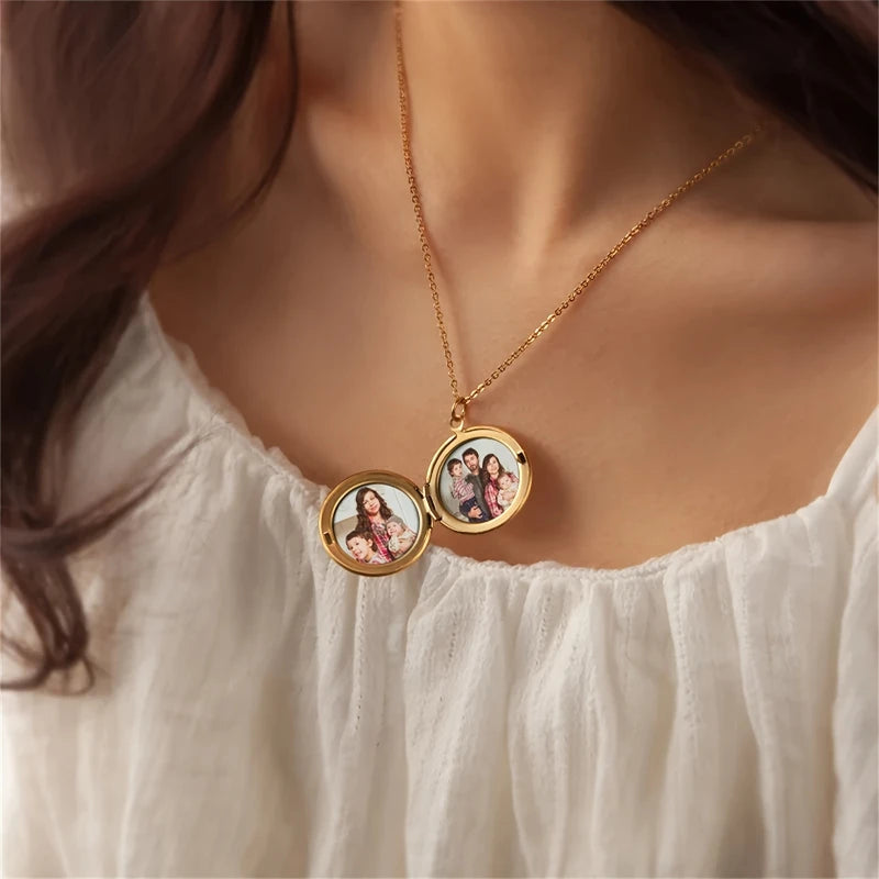 Virelle Fotolocket Ketting | Dames Ketting Verguld RVS | Ronde Hanger met 2 Foto’s & Elegant Persoonlijk Cadeau