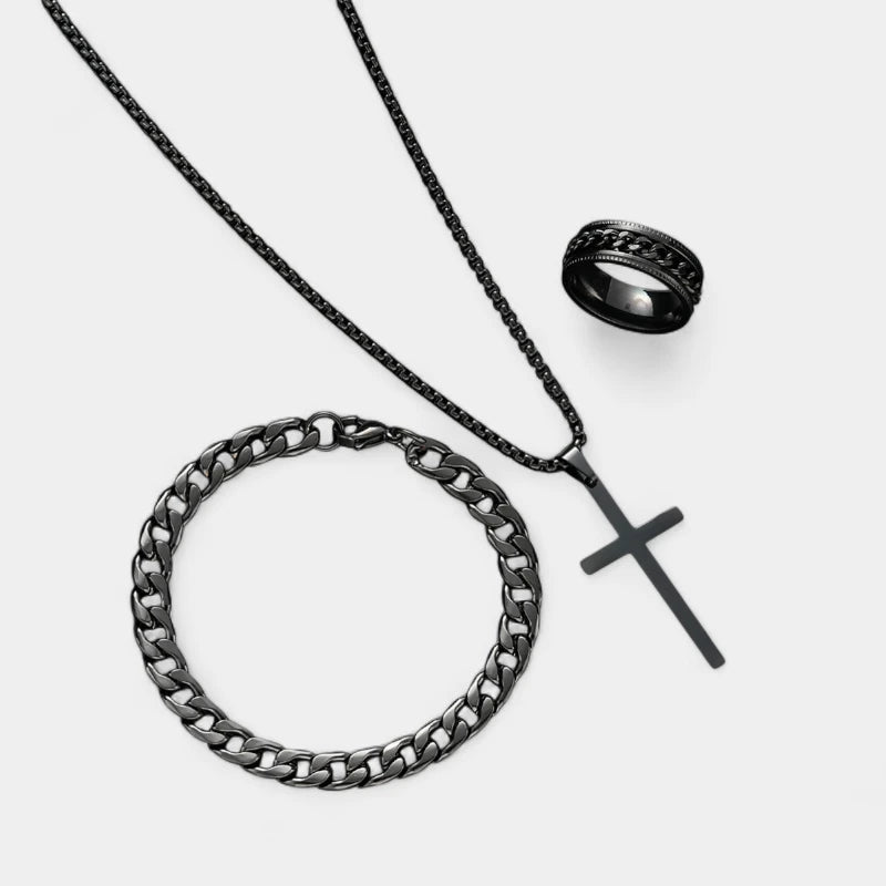 - Compleet Set: De set bevat een ketting met kruis hanger, een ring en een armband, waardoor je outfit in één keer compleet is.